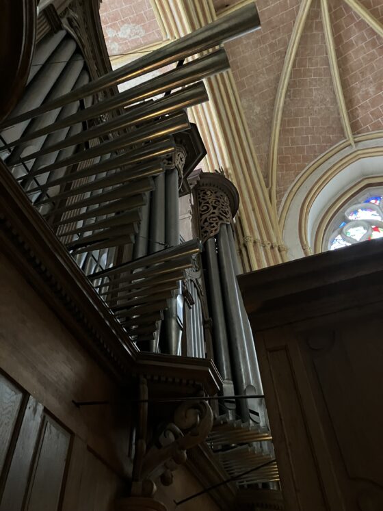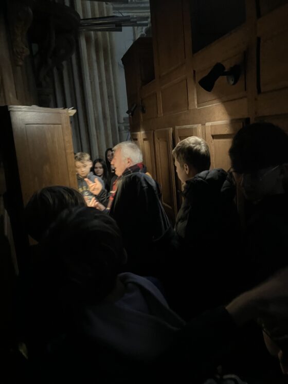 Le jeudi 27/11 (matin), les élèves de 5A et de 5B ont visité la cathédrale de Quimper avec les guides de la Maison du Patrimoine. À cette occasion, ils ont découvert les grandes orgues de ce monument majestueux. Le titulaire de cet instrument, M. Olivier Struillou, a autorisé les élèves à le rejoindre à la tribune. Une prise de hauteur qui a permis aux jeunes de découvrir l’architecture intérieure de la cathédrale d’un autre point de vue.