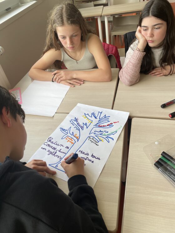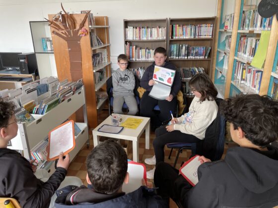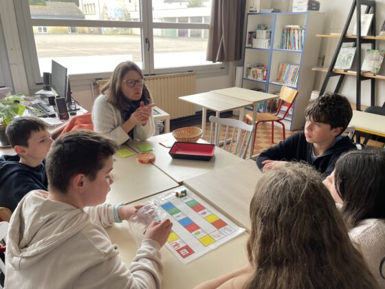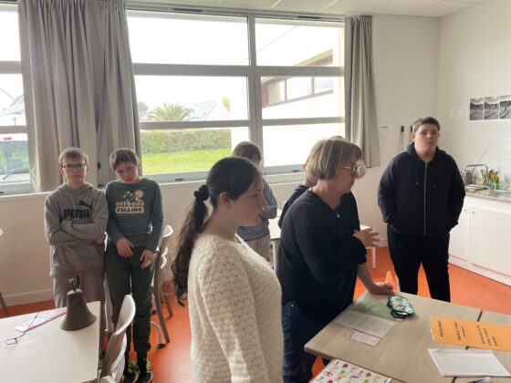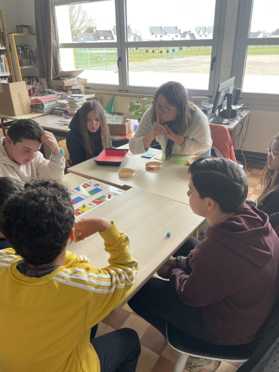 Aujourd’hui, les élèves de sixième du collège ont participé à différents ateliers proposés par les élèves du dispositif ULIS du collège Saint-Gabriel de Pont-l’Abbé, avec l’aide de leur enseignante Claire et des deux AESH Cécile et Annick. Cinq ateliers étaient proposés, certains animés par des élèves en autonomie :