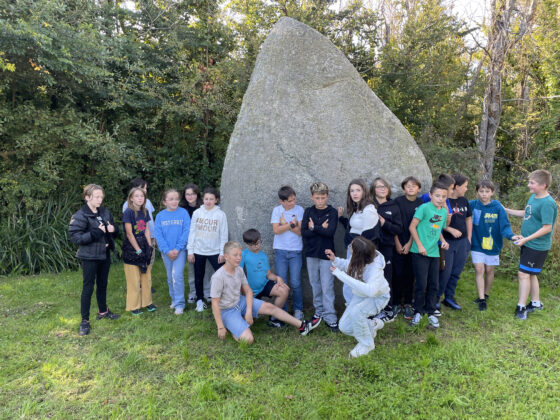 Certains ignorant la différence entre menhir et dolmen, l’origine bretonne de ces deux mots, et même les fonctions de ces mégalithes, ce fut une demi-heure de cours « hors les murs » des plus bénéfiques. Non, le menhir ne sert pas de protection contre le soleil, voire de maison ; il n’est pas non plus utilisé comme tombe, contrairement au dolmen. Il indiquerait plutôt la limite entre deux territoires, et la présence d’une source à proximité.