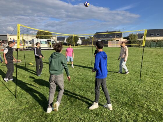 Dans le cadre de l’amélioration de leur cadre de vie, des élèves volontaires, accompagnés de Mme Calvez de la Vie scolaire, ont installé en début de semaine un filet de volley-ball. L’objectif est de diversifier les activités possibles lors des récréations : foot (le matin), tennis de table, volley, basket.