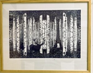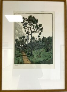 Tableau inspiré de l’oeuvre d’Henri Rivière, représente une lande bretonne, sur fond de ciel
