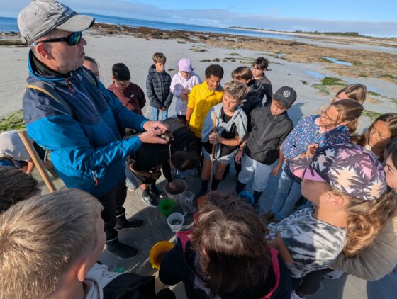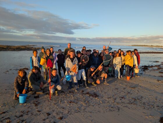 Équipés de leurs seaux et épuisettes, les élèves de 6ème ont enfilé leurs bottes pour explorer cet écosystème dynamique et fragile situé entre terre et mer : l’estran. À marée basse, la plage s’est transformée en laboratoire naturel : crabes, anémones, crevettes, poissons, méduses et lièvres de mer ont révélé les secrets d’une vie de flaque, rythmée par l’alternance du va et vient de l’eau. Cette sortie a été également l’occasion de découvrir comment se forment les plages, sculptées par vents et vagues et pourquoi il est nécessaire de les protéger, sans oublier l’influence des incroyables pouvoirs de la Lune et du Soleil sur les mouvements de l’océan. Entre émerveillement, découverte et esprit d’équipe, cette sortie fut un vrai moment d’apprentissage en plein air.